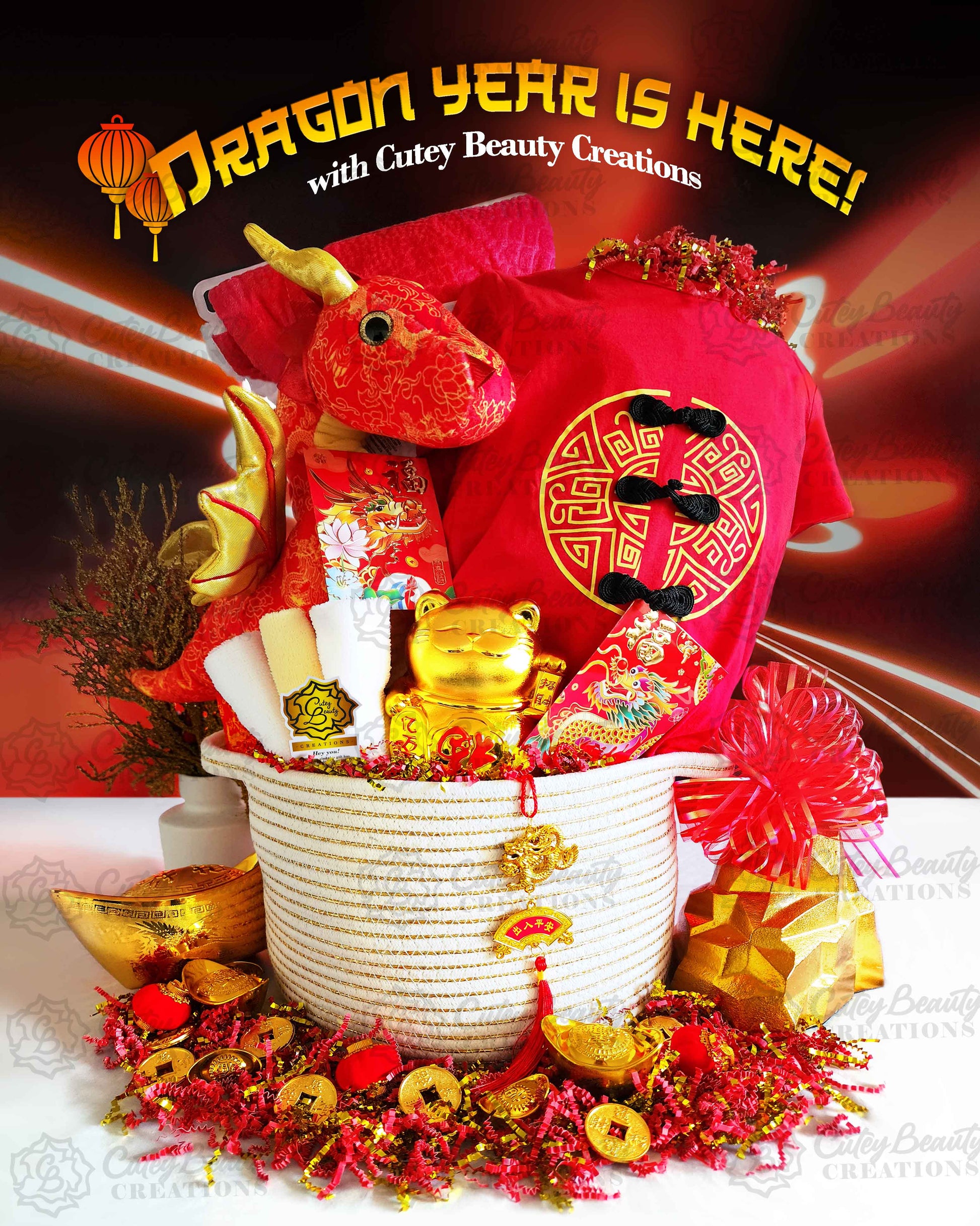 In this basket you will find a stylish, oriental red onesie, that is great for any traditional party. With this, comes the warm embrace of a matching soft blanket, and mini face cloths to ensure gentle care. A charming gold dragon key chain on red thread adds a touch of luck wherever you go, and the gold lucky cat money bank promises to bring a foundation of fortune and prosperity! And no dragon adventure is complete without a fiery dragon pal, ready to be your baby’s fierce and friendly companion on their journey to greatness.